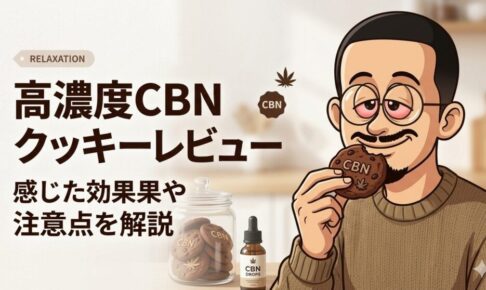 CBN十分な効果や変化を楽しめるとして大人気の「CBNクッキー」 この記事では、体感を楽しめるリキッドやハーブ、クッキーを合計で132種類試してきた「まるいわ」が「高濃度CBNクッキー」で感じた効果や特徴、注意点などを解説しま…